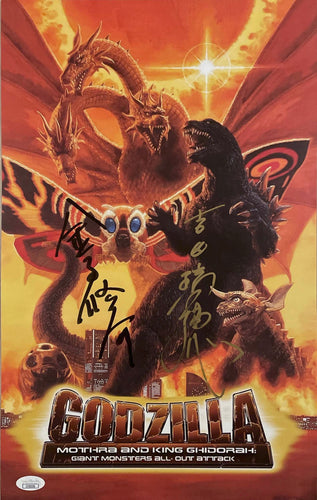 Director and Cast signed Godzilla GMK Shusuke Kaneko and Mizuho Yoshida 11x17 JSA Authenticated