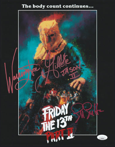 Ellen Lutter and Warrington Gillette signed Friday The 13th Part 2 11x14 photo. Comes with JSA sticker