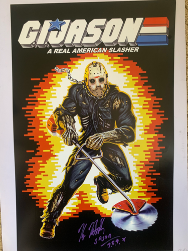 Friday The 13th Kane Hodder signed "GI JASON" 11x17